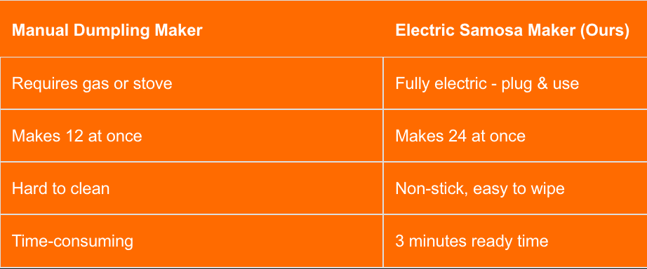 • 24-Slot Non-Stick Design Make up to 24 samosas or dumplings at once